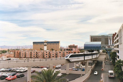 Modified Strip diagram showing aMap of the Monoral route for the new Strip Monorail system. (There's already talk of extending the monorail to the airport and downtown.) Details on the monorail operation are given on the Shuttles page.